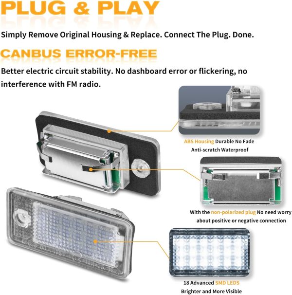 Set Lampi LED numar Audi A3 8P, A4 b6, A4 b7, A6, RS4, S4, RS6, S6, A8 au CANBUS, asadar nu dau eroare bec ars in bord.